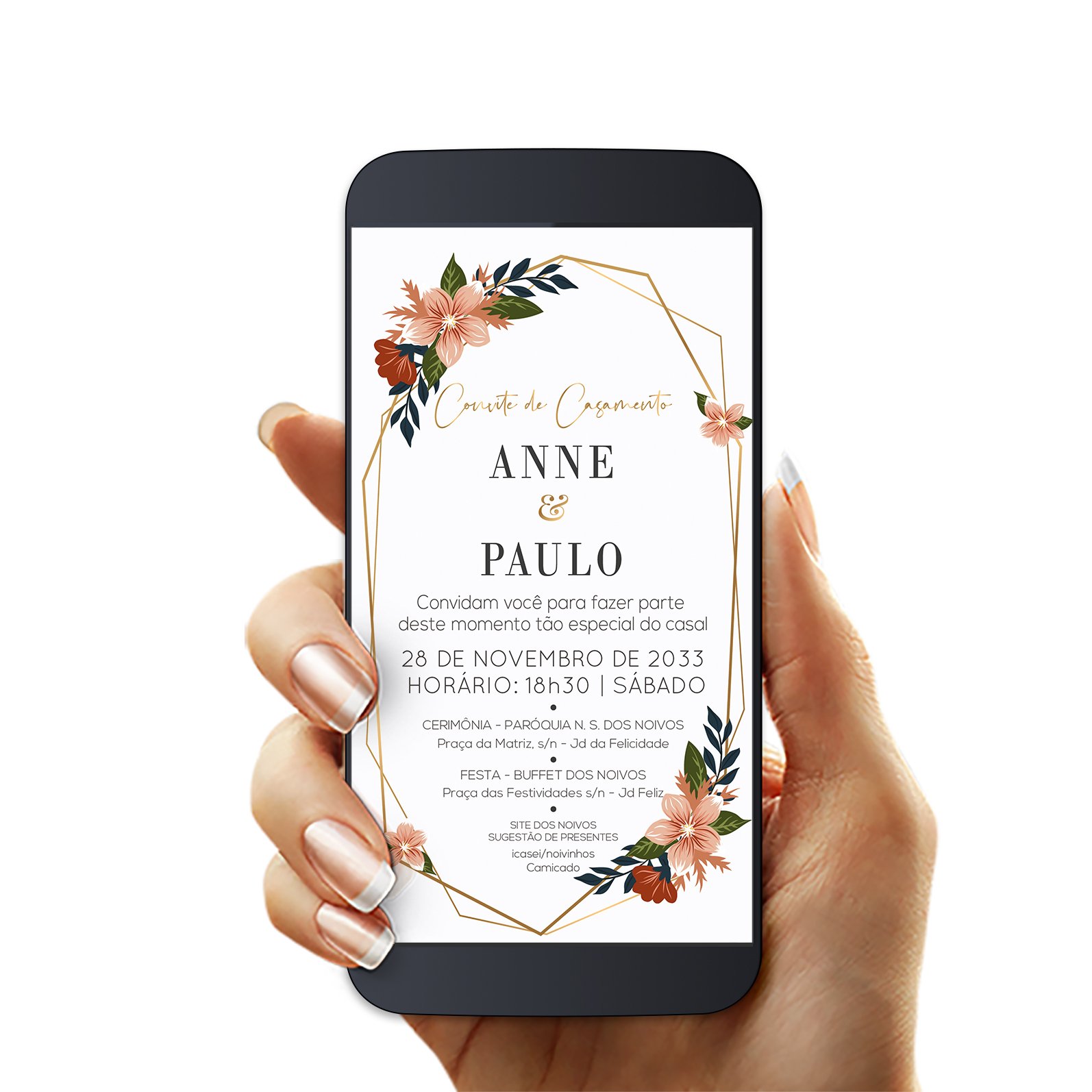 Convite de Casamento Digital Floral para envio pelo WhatsApp ou Imprimir